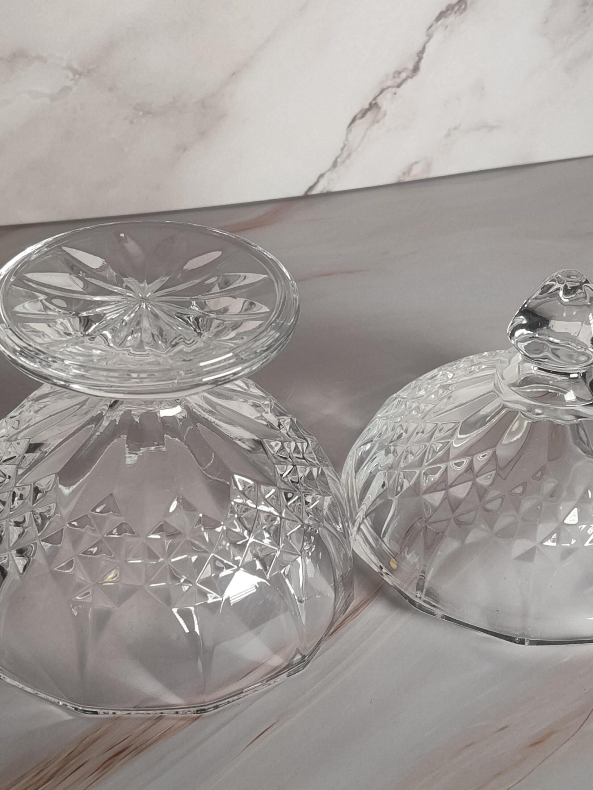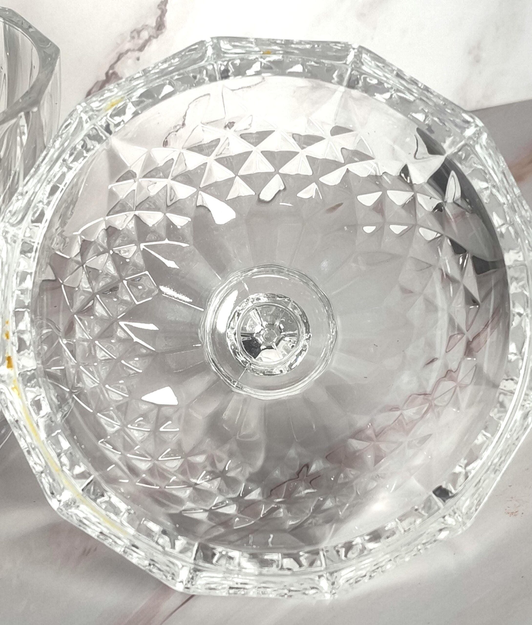 Cristal d'Arques Longchamp Crystal Covered Candy Dish Footed Lidded Bowl French Crystal Diamond Cut