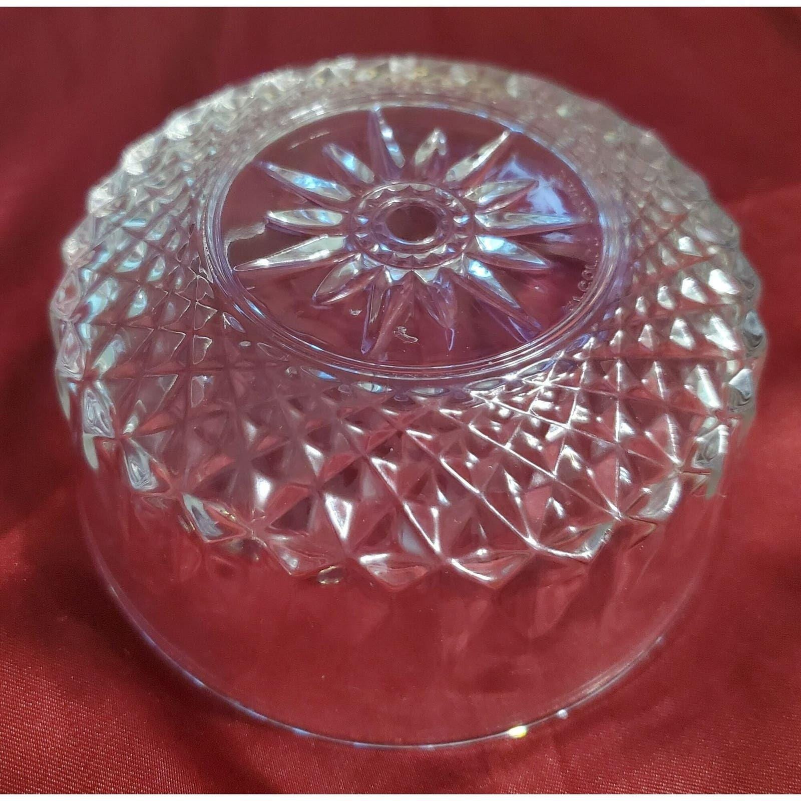 This charming small dessert or side dish bowl from Arcoroc France features the distinctive Starburst pattern that exemplifies 1970s geometric design aesthetics. The starburst motif radiates from the center of each bowl in bold, dynamic lines that create wonderful visual interest and light reflection. Arcoroc has been producing quality pressed glass in France since 1825, and their geometric patterns from the 1970s represent a perfect blend of modern design sensibility with traditional French glassmaking excellence. The clear glass construction allows the starburst pattern to shine while maintaining the versatility to complement any table setting or decor style. Measuring 5 inches in diameter, these small bowls are wonderfully versatile for serving individual portions of desserts, ice cream, fruit salad, pudding, or side dishes. They're perfect for presenting small servings at dinner parties, holding snacks like nuts or candy, serving condiments or sauces, or using as prep bowls in the kitchen. The compact size makes them ideal for portion control while the attractive starburst pattern ensures even simple servings look special. Use them for everyday family meals, entertaining guests, or as part of a vintage-inspired table setting that celebrates retro geometric design. In gently used condition showing minimal signs of use - these bowls have served well and are ready for many more years of service. The glass is clear and bright with the starburst pattern remaining sharp and well-defined. The French Arcoroc quality is evident in the substantial feel and precise molding. These bowls would appeal to collectors of French glassware, fans of 1970s geometric design, or anyone who appreciates practical vintage serving pieces with distinctive style. The starburst pattern brings retro charm to your table while the French craftsmanship ensures quality that stands the test of time!