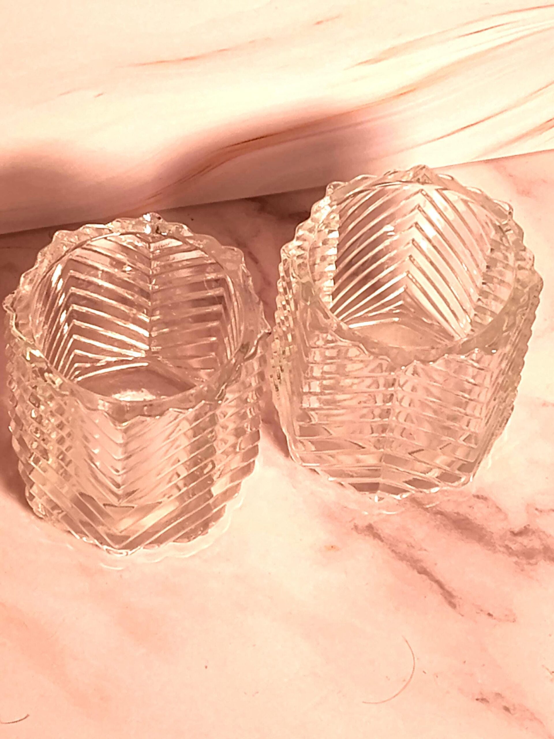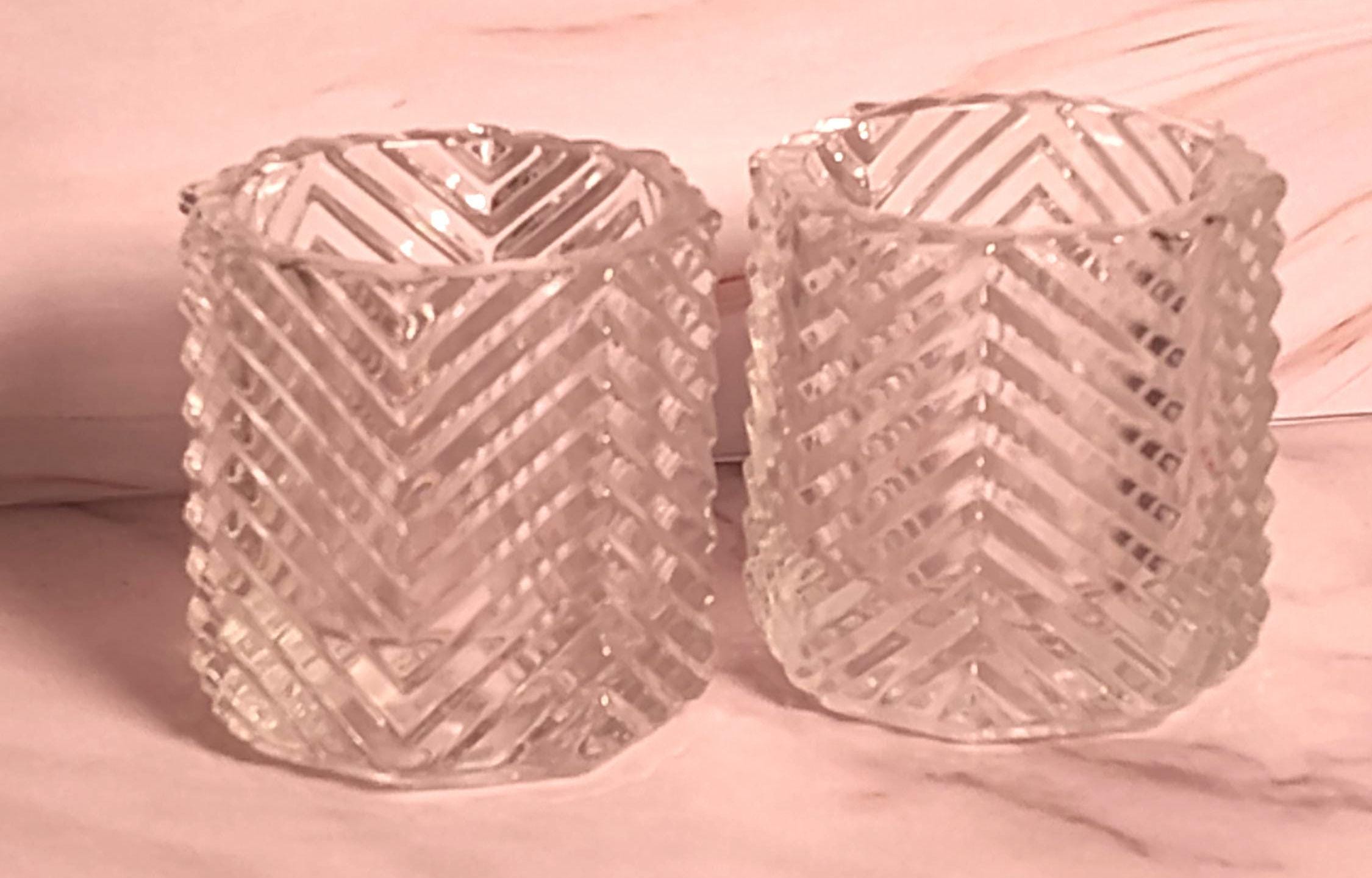 Vintage Avon Cut Glass Votive Candle Holders Set of 2 – Clear Chevron Pattern Tea Light