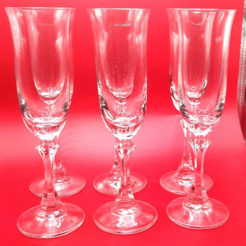 Vintage Euro Cristal German Hand Blown Champagne Flutes Set of 6 Crystal