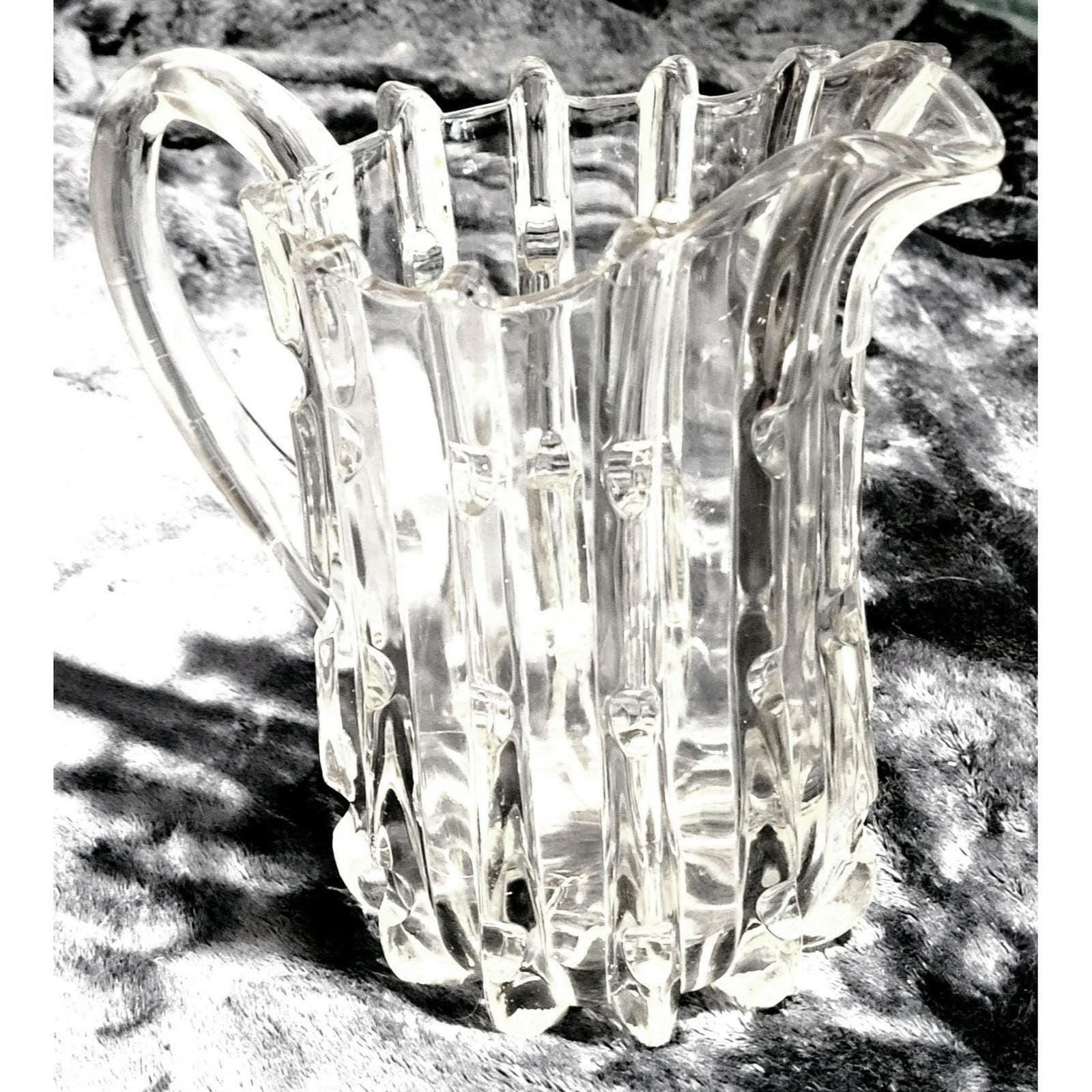 This vintage Imperial Glass water pitcher features the classic Broken Column pattern, also known as Bamboo, in sparkling clear glass. Standing 8" tall with a generous 40 oz capacity, this heavy, substantial pitcher showcases the quality craftsmanship Imperial Glass was known for. The textured columnar design creates beautiful light refraction and gives this piece a distinctive visual presence that sets it apart from ordinary glassware. This versatile pitcher works beautifully for everyday water service, iced tea, lemonade, or any beverage presentation. The generous 40 oz capacity makes it ideal for serving guests at dinner parties, holiday gatherings, or casual entertaining. The classic clear glass and timeless Broken Column pattern coordinate effortlessly with a variety of table settings and decor styles from traditional to contemporary. Whether used at the table or displayed in a china cabinet, this pitcher brings vintage charm and elegance to any setting. This vintage Imperial Glass pitcher is in good condition with only slight wear on the underside. No chips or cracks. The heavy, solid construction speaks to the quality of Imperial Glass production and ensures this piece remains fully functional for continued use and enjoyment. Perfect for vintage glass collectors, Imperial Glass enthusiasts, pattern glass lovers, and anyone who appreciates a well-made pitcher that combines classic American glassware design with practical everyday functionality.Additional information