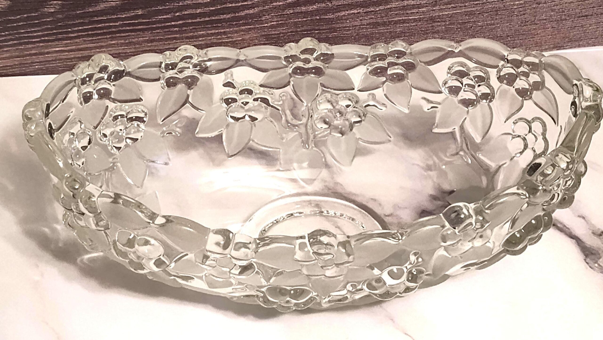 Vintage Mikasa Walther Glass Serving Bowl Floral Leaf Design 10 Inch