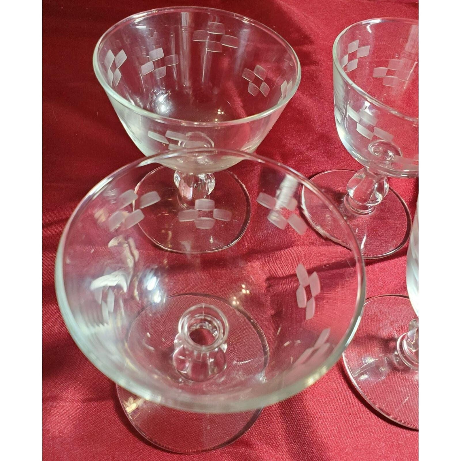 Vintage Set of 4 Etched Fizzio Liquor Liquer glasses